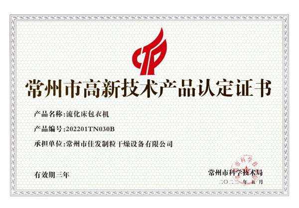 高新技術(shù)產(chǎn)品認(rèn)定證書